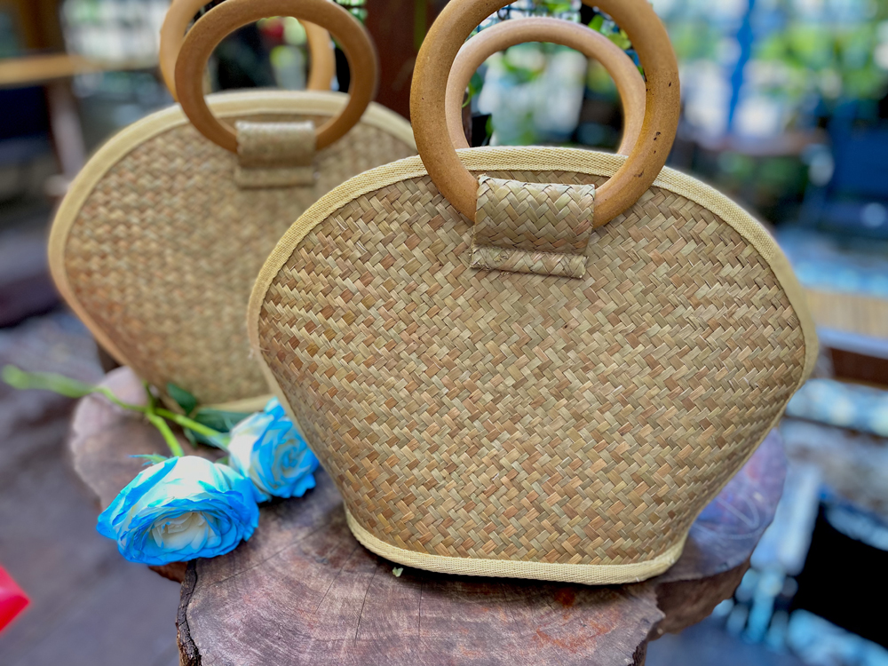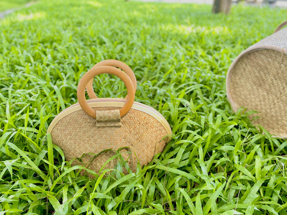 Giỏ sò bàng được làm từ cỏ bàng phú mỹ 100 bởi bàn tay của các nghệ nhân là người dân bản địa