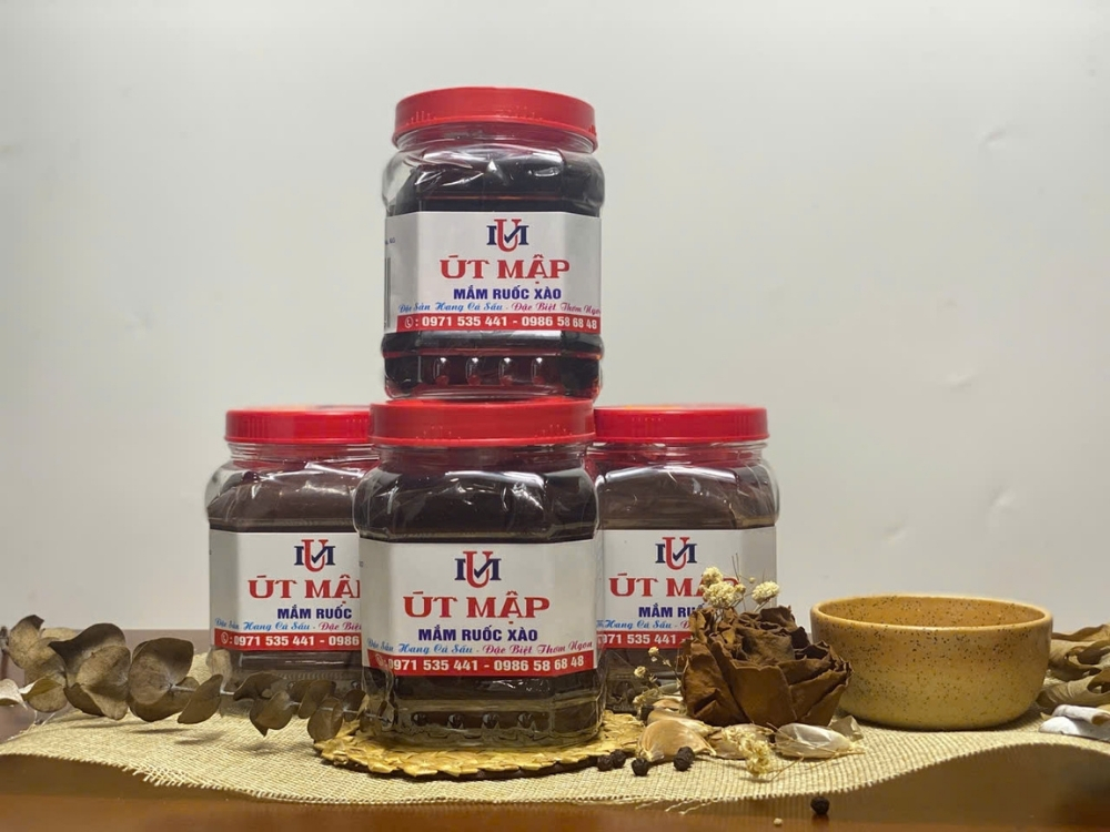 Mắm ruốc Út Mập là một trong những đặc sản trứ danh đến từ vùng đất Cái Sắn nổi bật với hương vị đậm đà thơm ngon đặc biệt thích hợp cho nhiều món ăn dân dã đến cầu kỳ như kho quẹt xào sả ớt chấm xoài làm nước chấm bún thịt nướng hay bún mắm